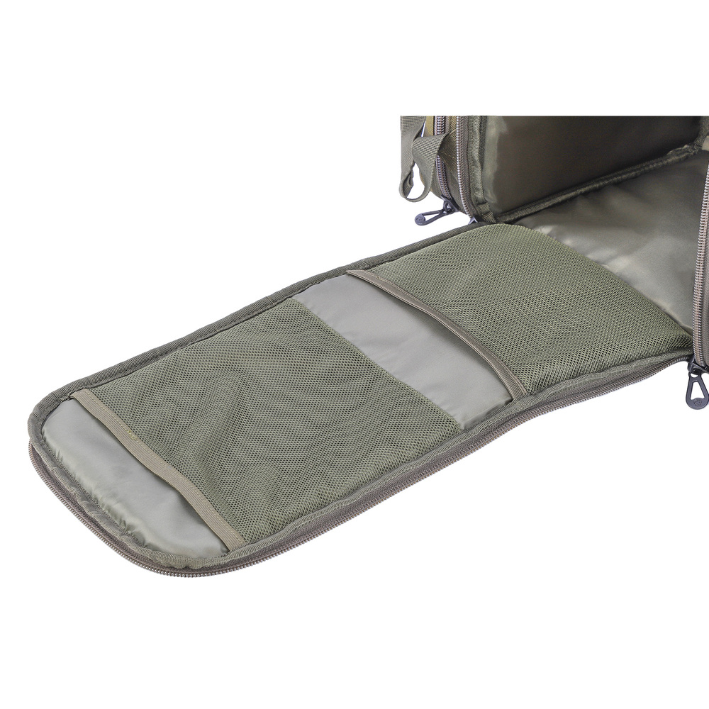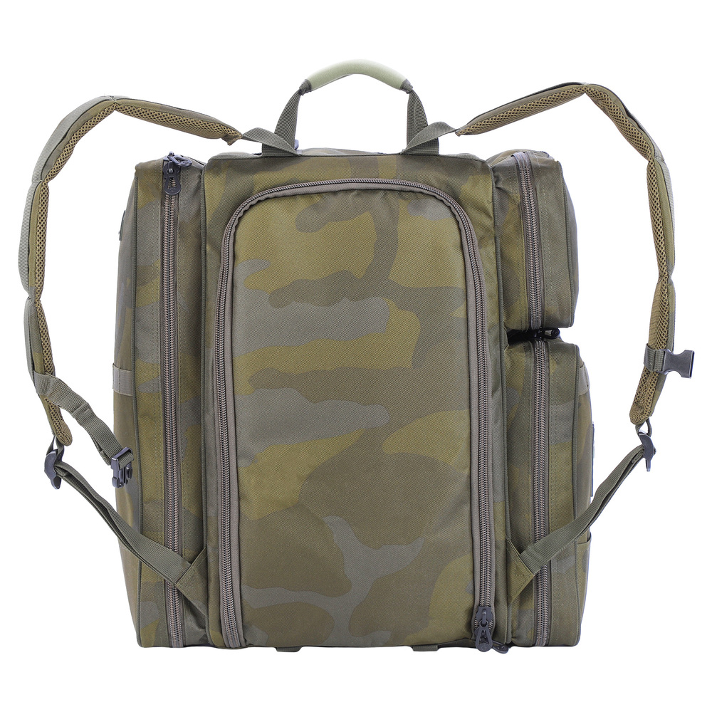 Модель выполнена из высококачественного материала с применением премиальной фурнитуры, что обеспечивает долговечность и надежность – рюкзак не подведет даже в самой экстремальной ситуации. Просторное основное отделение позволит удобно разместить все необходимые вещи. В откидывающейся спинке предусмотрены сетчатые карманы для мелких предметов. С одной стороны рюкзака имеется просторный карман, куда можно положить бутылку с водой, термос, штатив или другие габаритные аксессуары. Два кармана с другой стороны отлично подойдут для рыболовных коробок и других вещей, необходимых на рыбалке или в путешествии.
