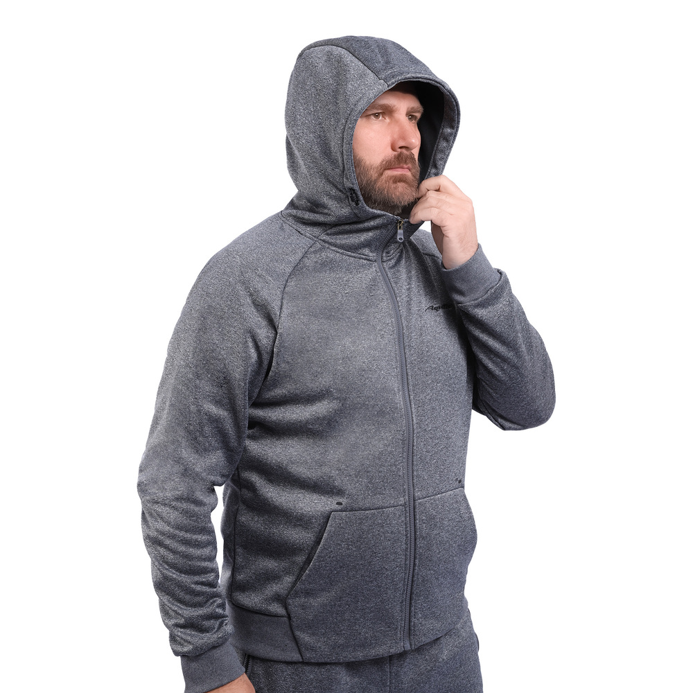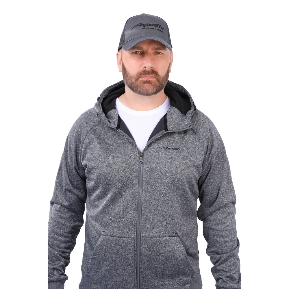 Джемпер оборудован надежной молнией. Для защиты от непогоды предусмотрен просторный капюшон с возможностью регулировки. Эластичные манжеты на рукавах обеспечивают удобную посадку и защищают от ветра. По бокам имеются просторные карманы, в которых можно согреть руки, если на улице похолодает. Благодаря стильному современному дизайну джемпер отлично впишется в гардероб всех поклонников рыбалки и активного отдыха на природе.