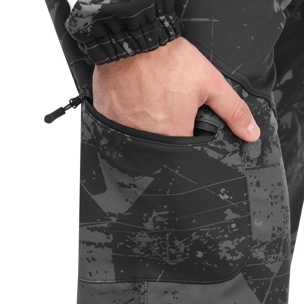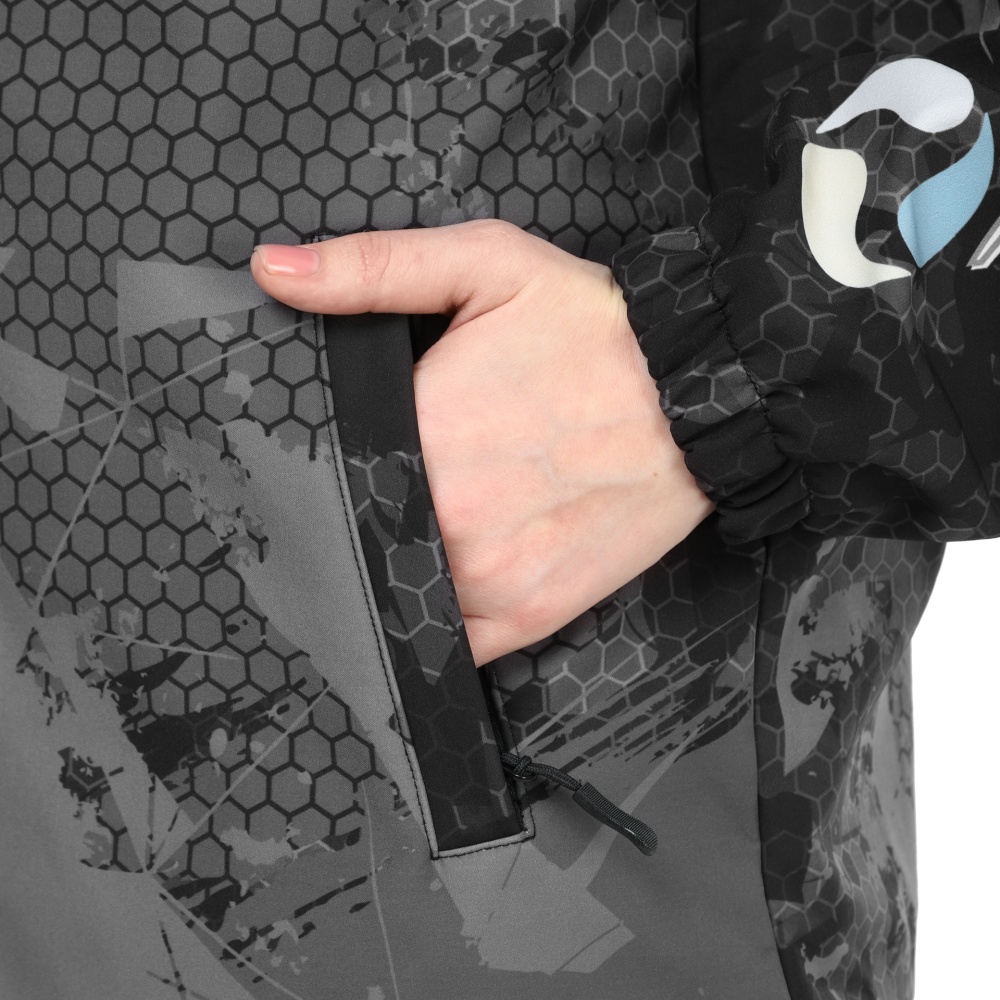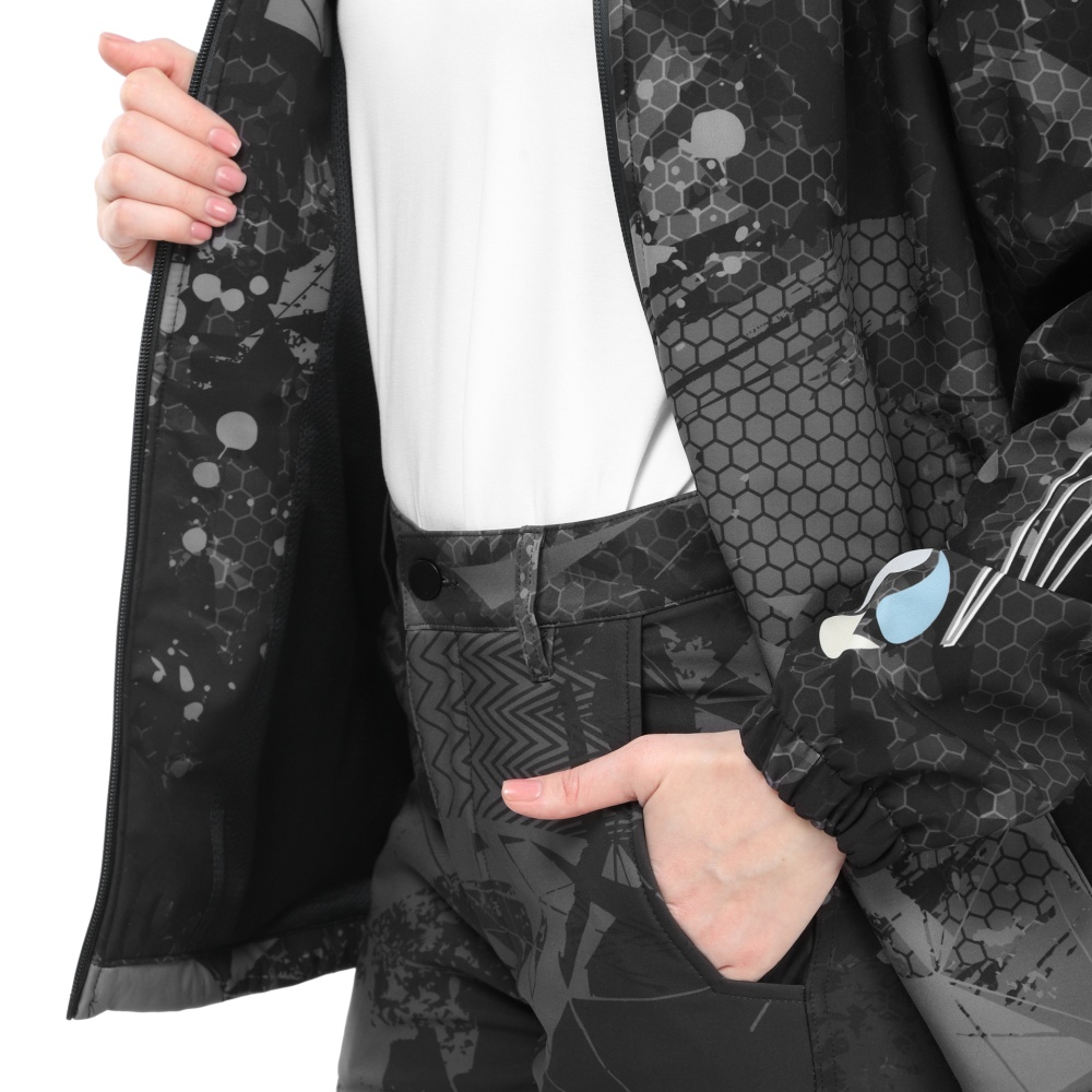 Куртка имеет два внешних вместительных боковых кармана на молниях для полезных мелочей и один внутренний карман на молнии. Регулировка по низу куртки и манжеты на резинке обеспечивают плотное прилегание. Брюки имеют два основных кармана и один боковой на молнии.
