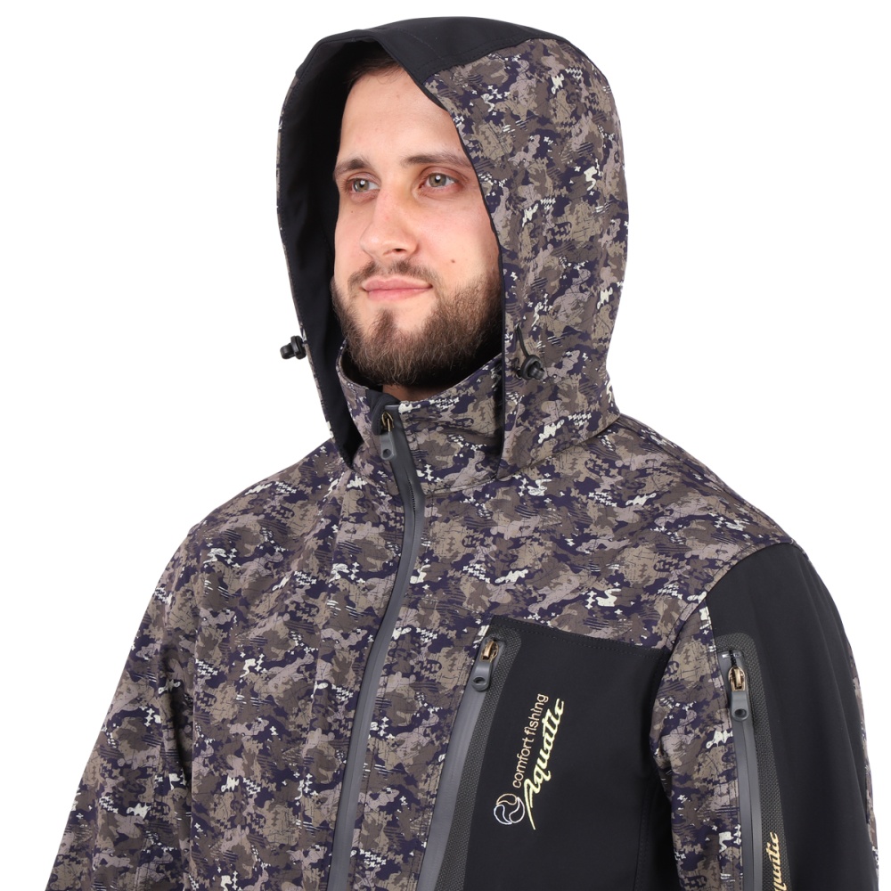 Куртка имеет 4 кармана. Все молнии на куртке влагозащитные. Высокий воротник и капюшон, надежно защищают шею и лицо от ветра и дождя. Внутренняя трикотажная манжета на рукавах обеспечивает плотное прилегание к телу для защиты от ветра и насекомых.