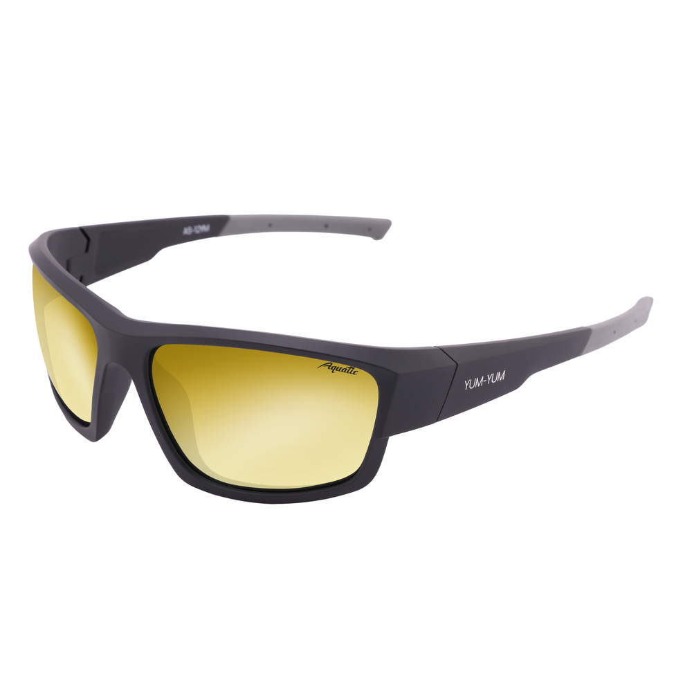 Поляризационные линзы выполнены из РС Polarized и улучшают детализацию предметов для оптимального восприятия. Линзы очков AQUATIC модель YUM-YUM относятся к третьей степени затемнения, пропускают от 8% до 18% света. Это самая распространённая степень затемнения линз в солнцезащитных очках у рыболовов. Такие очки так же можно использовать в городе, для отдыха на море и спортивных занятий в солнечную погоду.