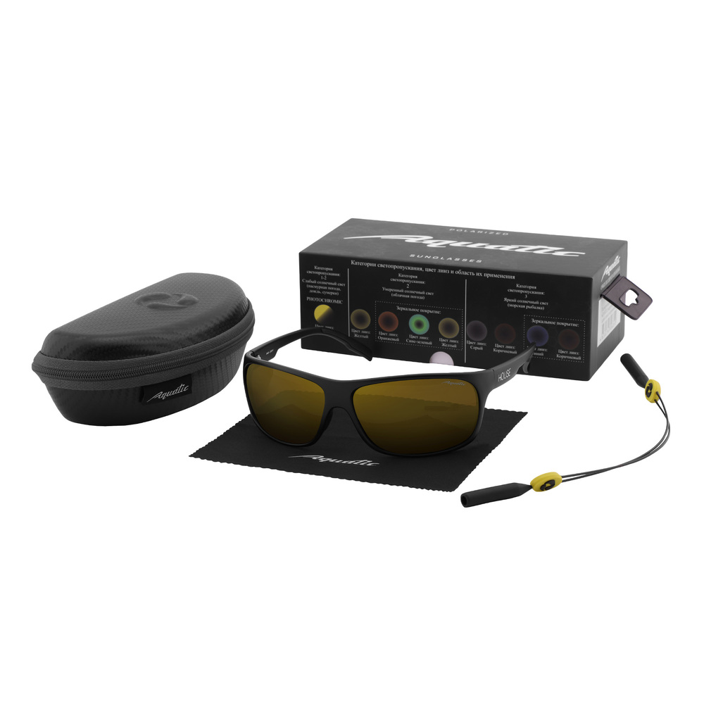 Солнцезащитные поляризационные очки Aquatic– это стильный аксессуар, который станет незаменимым помощником для любителей активного отдыха. Вы можете их носить длительное время благодаря легкому материалу оправы из поликарбоната. Вес очков составляет 22 г. Очки «HOUSE» подходят для лиц среднего и крупного размера. Поляризационные линзы выполнены из РС Polarized не искажают детализацию предметов для оптимального восприятия. Желтые линзы очков AQUATIC модель HOUSE относятся ко второй степени затемнения, пропускают от 18% до 43% света. Используются при умеренном солнечном свете, пасмурную погоду. Такие очки могут применяться в городе, туризме, рыбалки, так же при вождении автомобиля. Категория защиты глаз UV400- линзы способны блокировать ультрафиолетовые лучи длиной до 400 нм, предотвращая пагубное воздействие солнечного излучения на глаза. Очки Aquatic поглощают 100% ультрафиолетового излучения.