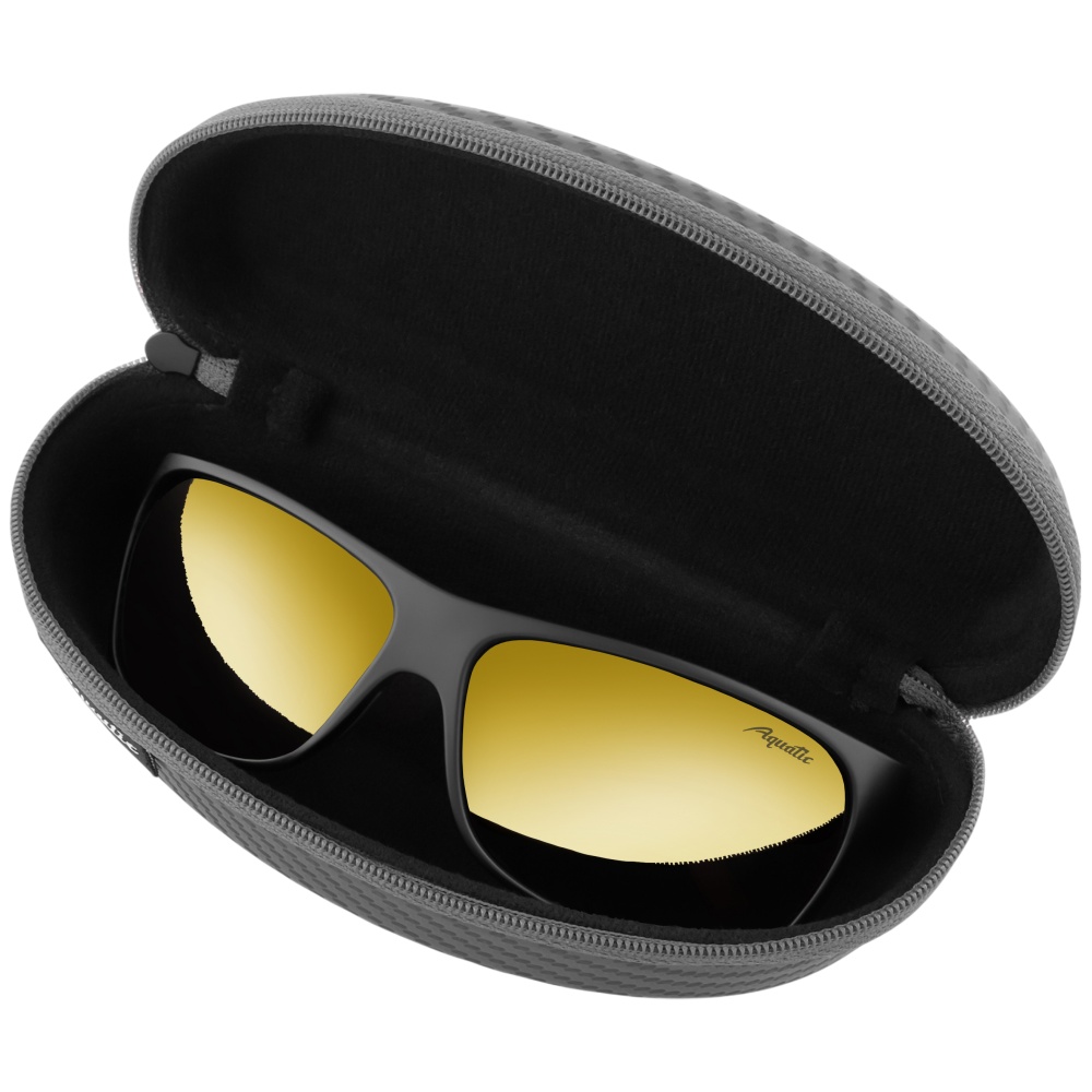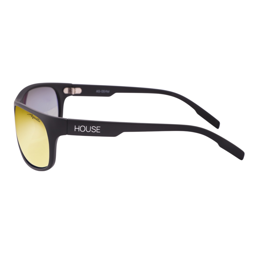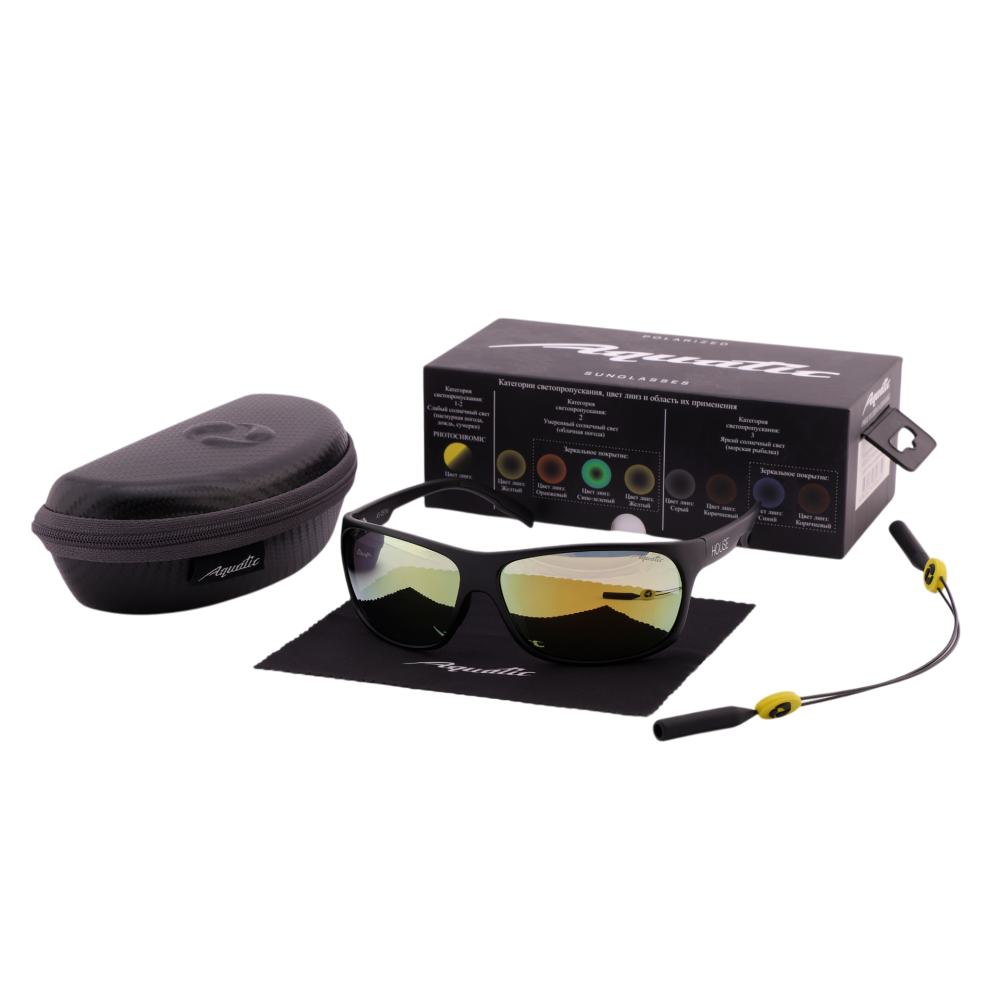 Солнцезащитные поляризационные очки Aquatic– это стильный аксессуар, который станет незаменимым помощником для любителей активного отдыха. Вы можете их носить длительное время благодаря легкому материалу оправы из поликарбоната. Вес очков составляет 23 г. Очки «HOUSE» подходят для лиц среднего и крупного размера. Поляризационные линзы выполнены из РС Polarized и улучшают детализацию предметов для оптимального восприятия. Линзы очков AQUATIC модель HOUSE относятся к третьей степени затемнения, пропускают от 8% до 18% света. Это самая распространённая степень затемнения линз в солнцезащитных очках у рыболовов. Такие очки так же можно использовать в городе, для отдыха на море и спортивных занятий в солнечную погоду. Серый цвет линз не искажают цветовую гамму, не утомляют глаза и подходят практически к любым условиям. Категория защиты глаз UV400- линзы способны блокировать ультрафиолетовые лучи длиной до 400 нм, предотвращая пагубное воздействие солнечного излучения на глаза. Очки Aquatic поглощают 100% ультрафиолетового излучения. Желтое зеркальное напыление линз Yellow Mirror позволит вам выглядеть стильно.