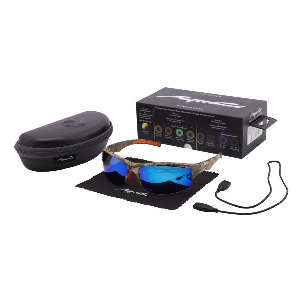 Солнцезащитные поляризационные очки AQUATIC – это стильный аксессуар, который станет незаменимым помощником для любителей активного отдыха. Вы можете их носить длительное время благодаря легкому материалу оправы из поликарбоната. Очки имеют водоотталкивающие покрытие. Вес очков составляет 25 г.