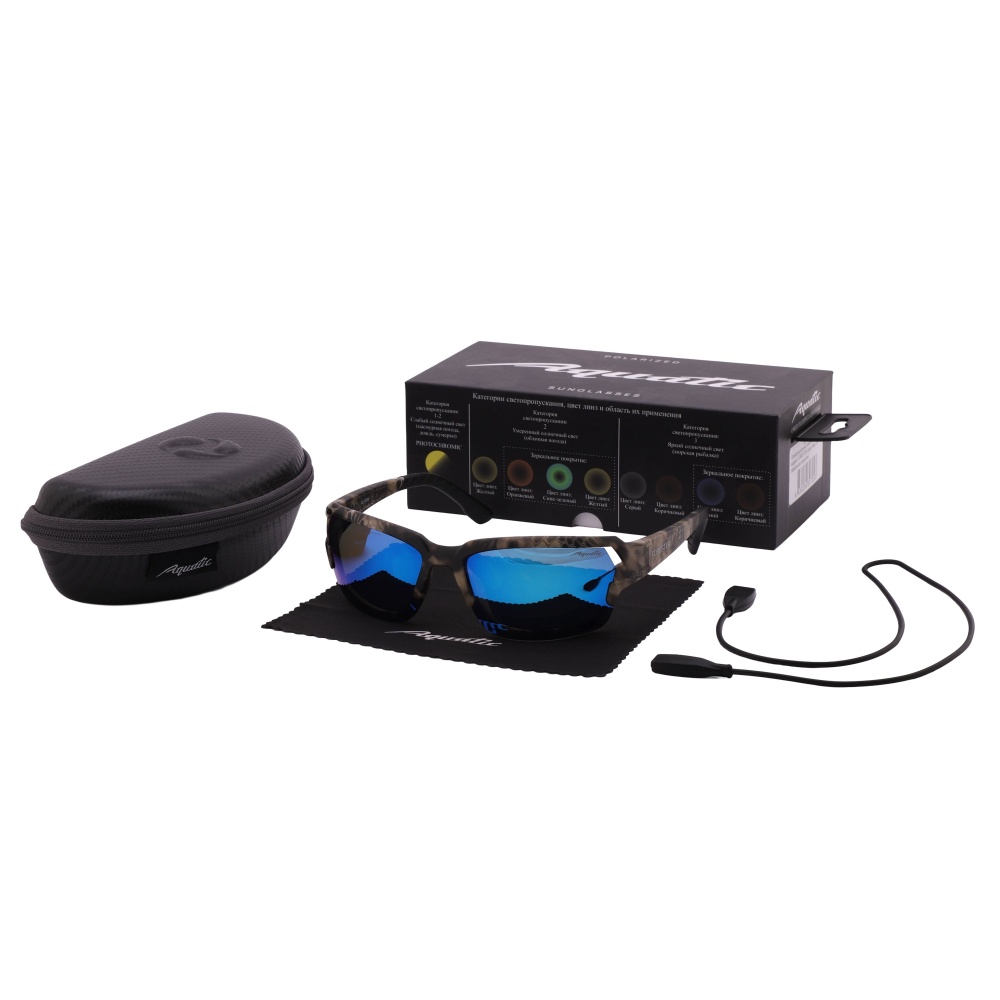 Серый цвет линз не искажают цветовую гамму, не утомляют глаза. Категория защиты глаз UV400- линзы способны блокировать ультрафиолетовые лучи длиной до 400 нм, предотвращая пагубное воздействие солнечного излучения на глаза. Очки AQUATIC поглощают 100% ультрафиолетового излучения. Синее зеркальное напыление линз Blue Mirror позволит вам выглядеть стильно.
