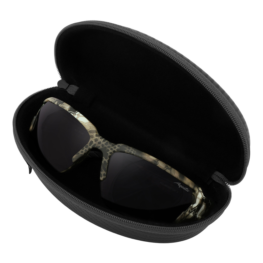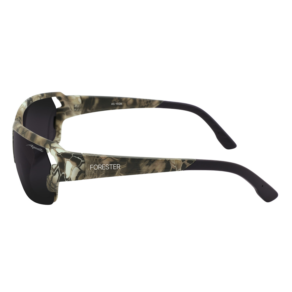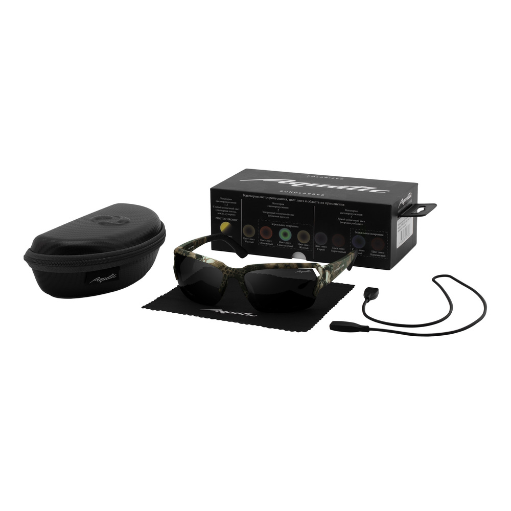 Солнцезащитные поляризационные очки Aquatic– это стильный аксессуар, который станет незаменимым помощником для любителей активного отдыха. Вы можете их носить длительное время благодаря алюминиевому материалу оправы, такие очки удивительно легкие и они устойчивы к коррозии. Вес очков составляет 24 г. Очки «FORESTER» подходят для лиц среднего и крупного размера. Поляризационные линзы выполнены из РС Polarized и улучшают детализацию предметов для оптимального восприятия. Серые линзы очков AQUATIC модель FORESTER относятся к третьей степени затемнения, пропускают от 8% до 18% света. Это самая распространённая степень затемнения линз в солнцезащитных очках у рыболовов. Такие очки так же можно использовать в городе, для отдыха на море и спортивных занятий в солнечную погоду. Серый цвет линз не искажают цветовую гамму, не утомляют глаза. Минус – в тёмных очках с серыми линзами не стоит водить машину при недостаточном освещении. Категория защиты глаз UV400- линзы способны блокировать ультрафиолетовые лучи длиной до 400 нм, предотвращая пагубное воздействие солнечного излучения на глаза. Очки Aquatic поглощают 100% ультрафиолетового излучения.