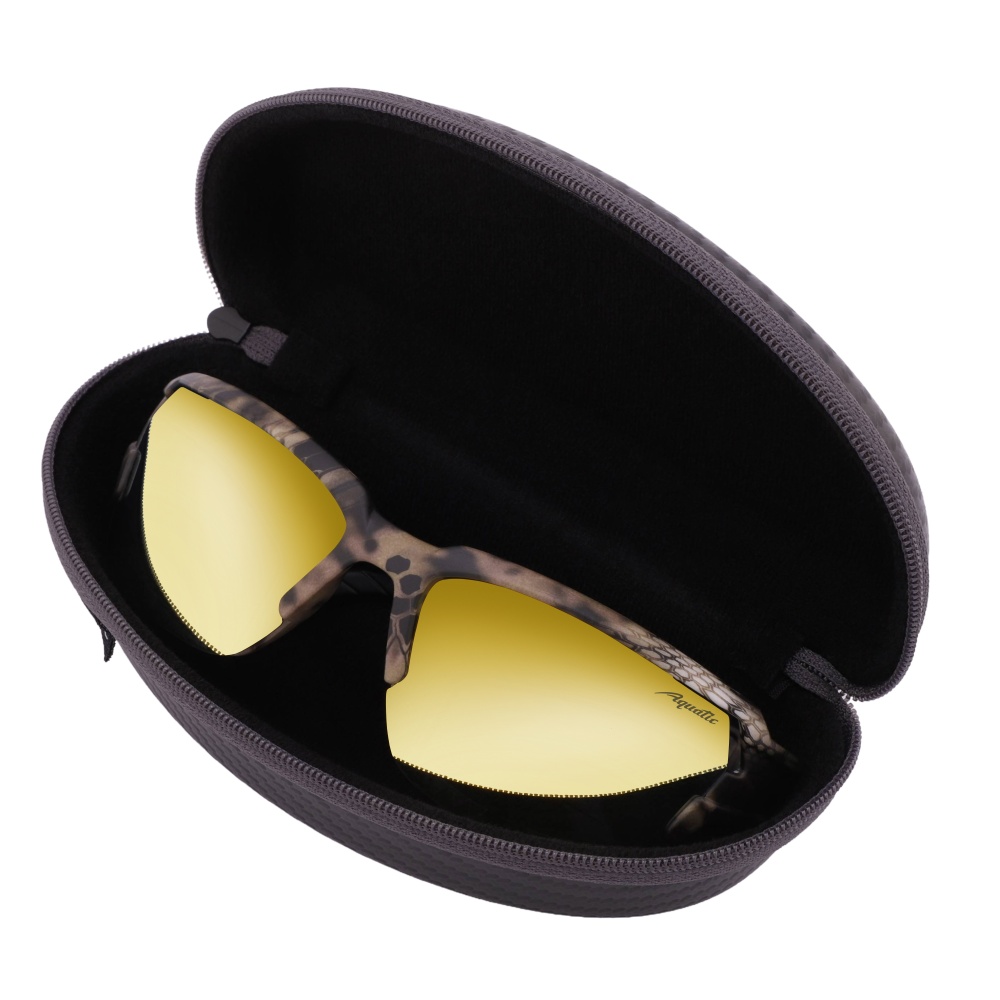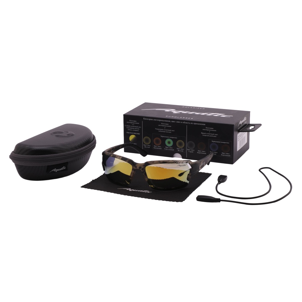 Солнцезащитные поляризационные очки AQUATIC – это стильный аксессуар, который станет незаменимым помощником для любителей активного отдыха. Вы можете их носить длительное время благодаря легкому материалу оправы из поликарбоната. Вес очков составляет 23 г.
