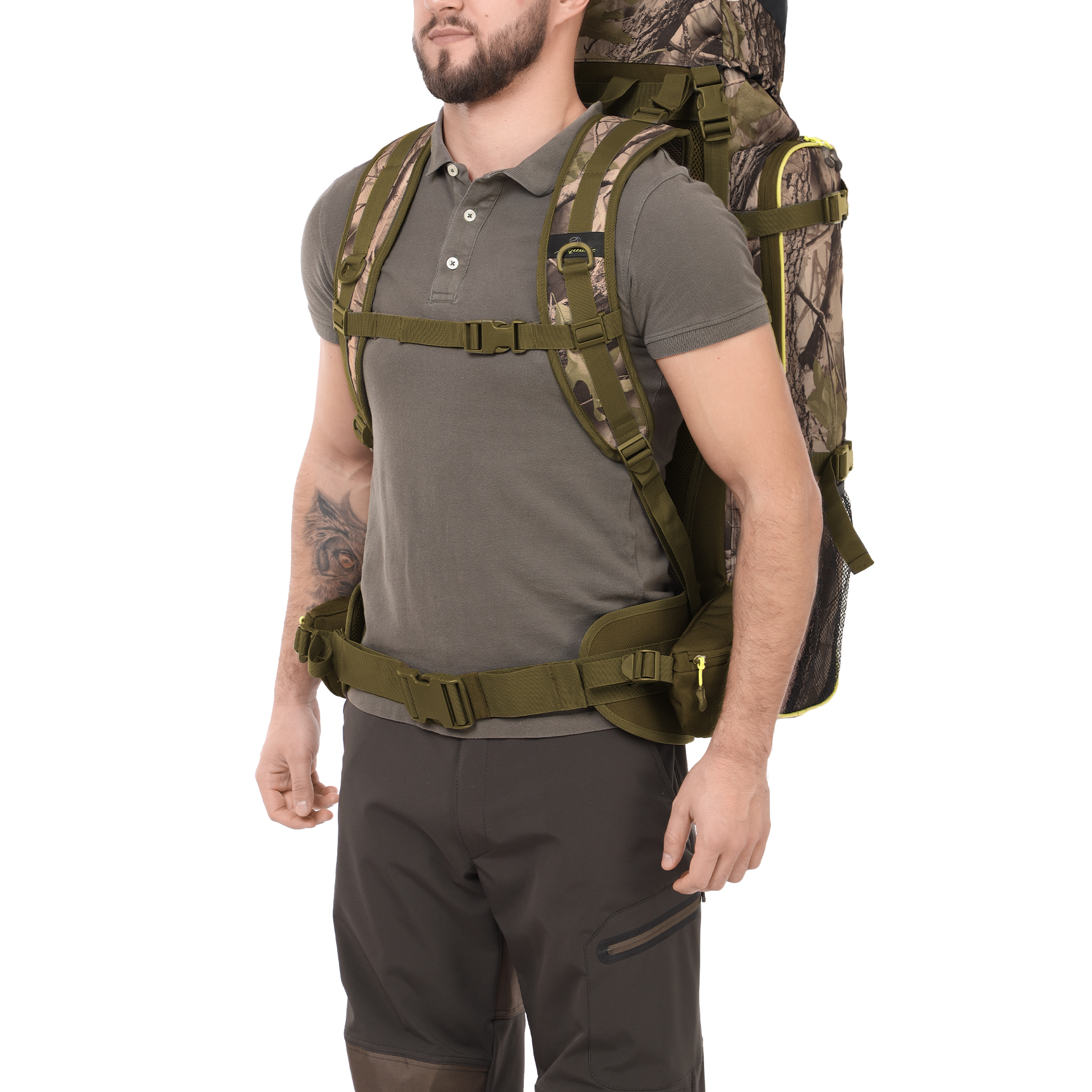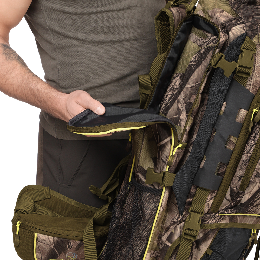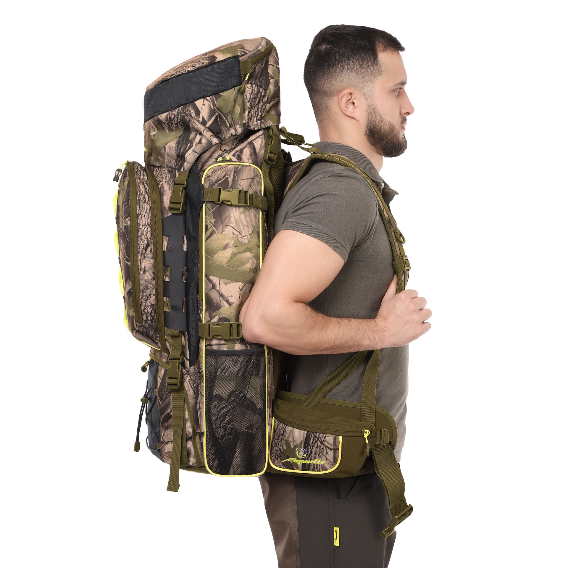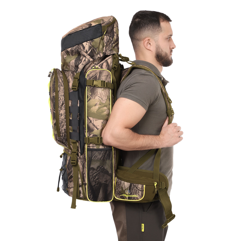 Универсальный рюкзак, объемом 67 литров, из прочной непромокаемой ткани полиэстер 600D (350 гр/м.кв) и дном из ПВХ. Регулируемая система подвески позволяет настроить рюкзак в зависимости от роста. Разработан специально для большого количества снаряжения, для средних и продолжительных переходов. Для уменьшения объема, предусмотрены компрессионные стяжки. Вентилируемая спинка усилена пластиком и вспененным полиэтиленом, что обеспечивает мягкость при прилегании к телу, не зависимо от содержимого. Предусмотрен поясной ремень регулировкой до 130 см в обхвате талии, с прочной застежкой типа фастекс и двумя карманами для аксессуаров размером 20х10х4 см. Основное отделение с верхним доступом на затяжке, объемом 40 л. Нижняя часть рюкзака при необходимости изолируется в отделение (перегородка на молнии), объемом 10 л, с отдельным доступом на лицевой части. Съёмный регулируемый верхний клапан, с карманом 25х25х5 см. Два боковых кармана на молнии, размером 60х14х6 см. Большой карман на лицевой части 35х22х5 см с органайзером из множества кармашков для аксессуаров и мелочей. Рыболовный рюкзак Акватик РО-67 – отличный подарок для рыбака, туриста и любителя охоты.