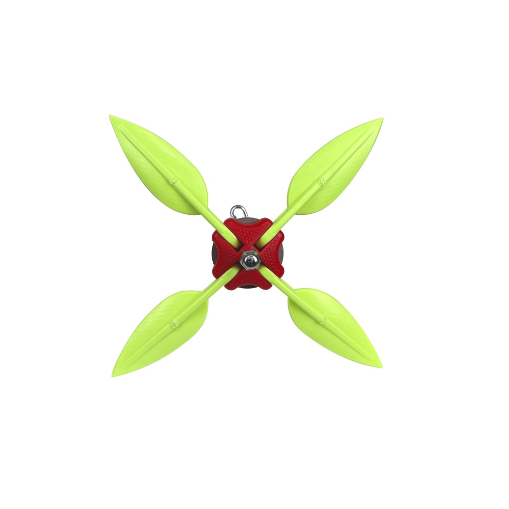 Четыре лопасти расположены таким образом, что как минимум две из них всегда врезаются в дно и надежно удерживают лодку.