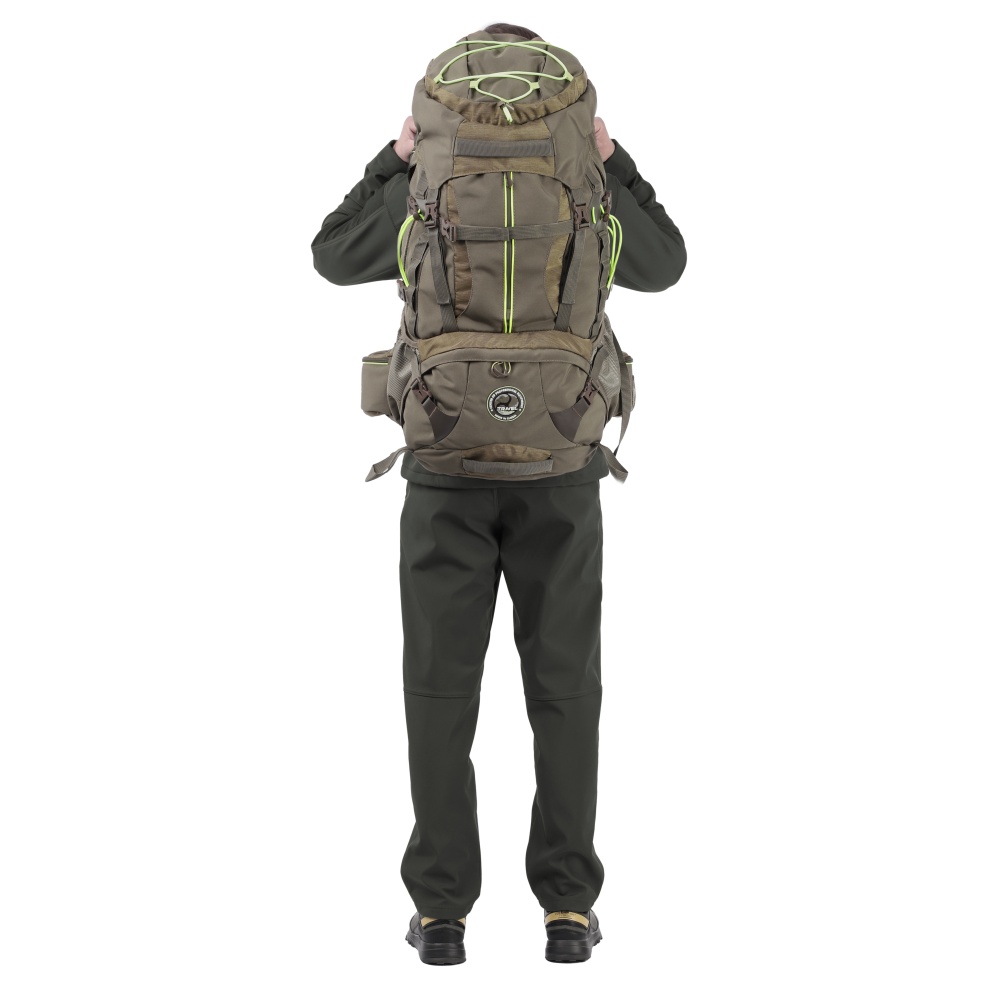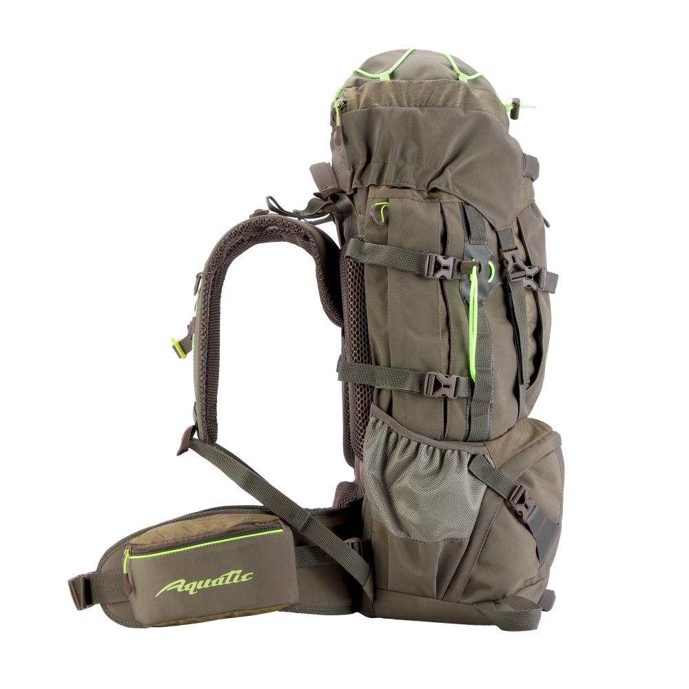 Надежный, прочный и комфортный рюкзак станет идеальным помощником для длительных походов, путешествий и экспедиций. Рюкзак, объемом 75+10 литров, из прочной непромокаемой ткани полиэстер с DWR обработкой, плотностью 280 гр/м.кв, разработан специально для средних и продолжительных походов. В рюкзаке Акватик Р-75+10 продуманна каждая деталь. Рюкзак оснащен регулируемой системой подвески, которая позволяет настроить рюкзак по спине в зависимости от вашего роста. Вентилируемая эргономичная спинка, обеспечивает мягкость при прилегании к телу, не зависимо от содержимого. Спинка усилена пластиком и алюминиевым каркасом. В рюкзаке предусмотрен поясной ремень с регулировкой до 130 см в обхвате талии, с прочной застежкой типа фастекс и двумя карманами для аксессуаров размером 21х9х6см. Основное отделение с верхним доступом на затяжке, объемом 45 л. Нижняя часть рюкзака при необходимости изолируется в отделение (перегородка на молнии), объемом 10 литров, с отдельным доступом на лицевой части. Съёмный, регулируемый верхний клапан-сумка имеет карман 27х22х4 см. Рюкзак имеет два боковых кармана на молнии и два кармана открытых для бутилированной воды или термоса. На лицевой части имеется карман на молнии. Для закрепления дополнительного снаряжения предусмотрена система Molle и две петли снизу рюкзака для крепления ледоруба, трекинговых палок или длинномерного снаряжения. Для уменьшения объема рюкзака, предусмотрены компрессионные стяжки.