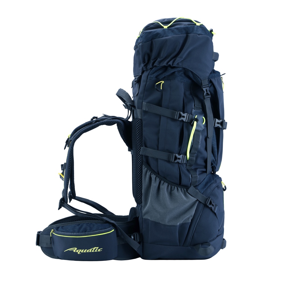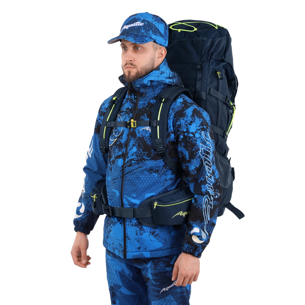 Надежный, прочный и комфортный рюкзак станет идеальным помощником для длительных походов, путешествий и экспедиций. Рюкзак, объемом 75+10 литров, из прочной непромокаемой ткани полиэстер с DWR обработкой, плотностью 280 гр/м.кв, разработан специально для средних и продолжительных походов. В рюкзаке Акватик Р-75+10 продуманна каждая деталь. Рюкзак оснащен регулируемой системой подвески, которая позволяет настроить рюкзак по спине в зависимости от вашего роста. Вентилируемая эргономичная спинка, обеспечивает мягкость при прилегании к телу, не зависимо от содержимого. Спинка усилена пластиком и алюминиевым каркасом. В рюкзаке предусмотрен поясной ремень с регулировкой до 130 см в обхвате талии, с прочной застежкой типа фастекс и двумя карманами для аксессуаров размером 21х9х6см. Основное отделение с верхним доступом на затяжке, объемом 45 л. Нижняя часть рюкзака при необходимости изолируется в отделение (перегородка на молнии), объемом 10 литров, с отдельным доступом на лицевой части. Съёмный, регулируемый верхний клапан-сумка имеет карман 27х22х4 см. Рюкзак имеет два боковых кармана на молнии и два кармана открытых для бутилированной воды или термоса. На лицевой части имеется карман на молнии. Для закрепления дополнительного снаряжения предусмотрена система Molle и две петли снизу рюкзака для крепления ледоруба, трекинговых палок или длинномерного снаряжения. Для уменьшения объема рюкзака, предусмотрены компрессионные стяжки.